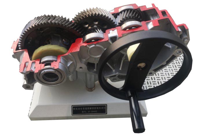 本設備臺架以剖切北汽新能源原車變速器總成為基礎,經(jīng)過剖切加工制作而成,使變速器內(nèi)部結(jié)構(gòu)清晰可見,能充分展示新能源汽車變速器的結(jié)構(gòu)組成、工作特點和工作原理。手動轉(zhuǎn)動輸入軸,變速器整體可實現(xiàn)動態(tài)演示,動態(tài)觀察其工作原理。本設備具有較強的教學意義,配套實訓指導資料,合格證,保修卡。