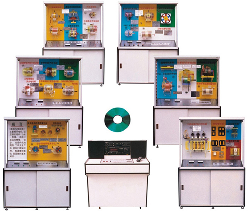 電機(jī)與變壓器示教陳列柜是根據(jù)大、中專院校,按《電力學(xué)》、《電力拖動》、電機(jī)控制》、《電機(jī)修理》等教材設(shè)計一套電化設(shè)備,品種多,功能齊全,學(xué)生可根據(jù)教材需要觀察、分析,大大提高分析電機(jī)原理的能力,本陳列柜共分6柜及一臺電腦解說控制臺。有第一代和第二代兩種形式。