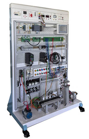 采用網(wǎng)孔板安裝方式,螺絲拆裝方便,位置可調(diào),以方便學(xué)員實訓(xùn)操作。含開關(guān)量、模擬量、變頻調(diào)速、總線通信模塊等,配套組態(tài)監(jiān)控軟件,實現(xiàn)仿真化、信息化、網(wǎng)絡(luò)實訓(xùn)教學(xué),體現(xiàn)實訓(xùn)教學(xué)的網(wǎng)絡(luò)性和系統(tǒng)性;通過Profibus DP總線,將實訓(xùn)裝置(從站)PLC和主站PLC進行Profibus DP主從通信。PLC與電腦和觸摸屏實現(xiàn)以太網(wǎng)通信,觸摸屏畫面可實時監(jiān)控PLC系統(tǒng)運行狀態(tài)和控制PLC系統(tǒng);通過虛擬環(huán)境實時顯示PLC運行狀態(tài),模擬工業(yè)現(xiàn)場控制,可以進行編程訓(xùn)練、程序編寫測試等功能。