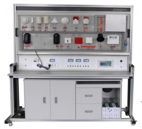 物聯(lián)網(wǎng)智能家居實(shí)訓(xùn)系統(tǒng)采用開(kāi)放式和拆裝式結(jié)構(gòu)設(shè)計(jì),采用鋁合金型材+網(wǎng)孔板結(jié)構(gòu),桌面為高級(jí)防火防水板,耐磨高密度板,結(jié)構(gòu)堅(jiān)固,配有常用電源控制柜,能對(duì)各系統(tǒng)進(jìn)行供電、接線、調(diào)試運(yùn)行和維護(hù)實(shí)訓(xùn)和考核。設(shè)備有設(shè)備備柜,用于放置工具、存放資料等,實(shí)訓(xùn)桌還設(shè)有四個(gè)萬(wàn)向輪和四個(gè)固定調(diào)節(jié)機(jī)構(gòu),便于移運(yùn)和固定,有利于實(shí)訓(xùn)室布局。本系統(tǒng)全部元器件均采用實(shí)物,整個(gè)實(shí)訓(xùn)裝置主要由幕簾探測(cè)器、ZIGBEE主機(jī)、聲光報(bào)警器、Zigbee感煙探測(cè)器、然氣探測(cè)器、Zigbee燈光控制開(kāi)關(guān)、Zigbee智能調(diào)光開(kāi)關(guān)、APP監(jiān)控系統(tǒng)等組成。