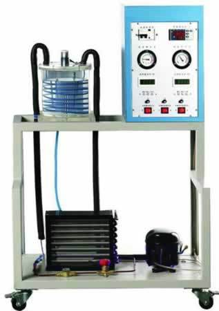 包括壓縮機(jī)、冷凝器、干燥過(guò)濾器、毛細(xì)管、有機(jī)玻璃圓柱體、紫銅管繞制的蒸發(fā)器、加熱器、馬達(dá)和攪拌器等。